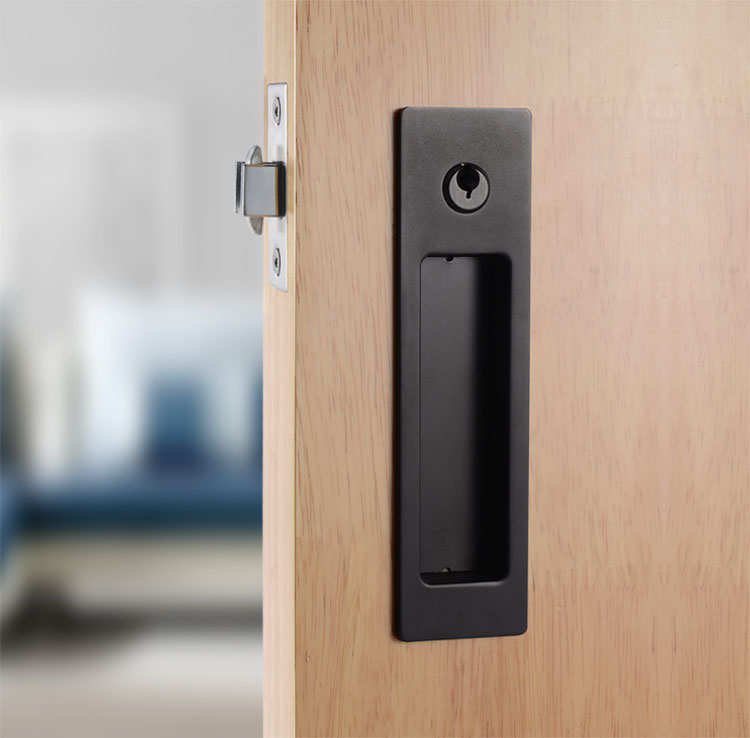 Premium Sliding Door Entrance Set Lock Rectangular BLK